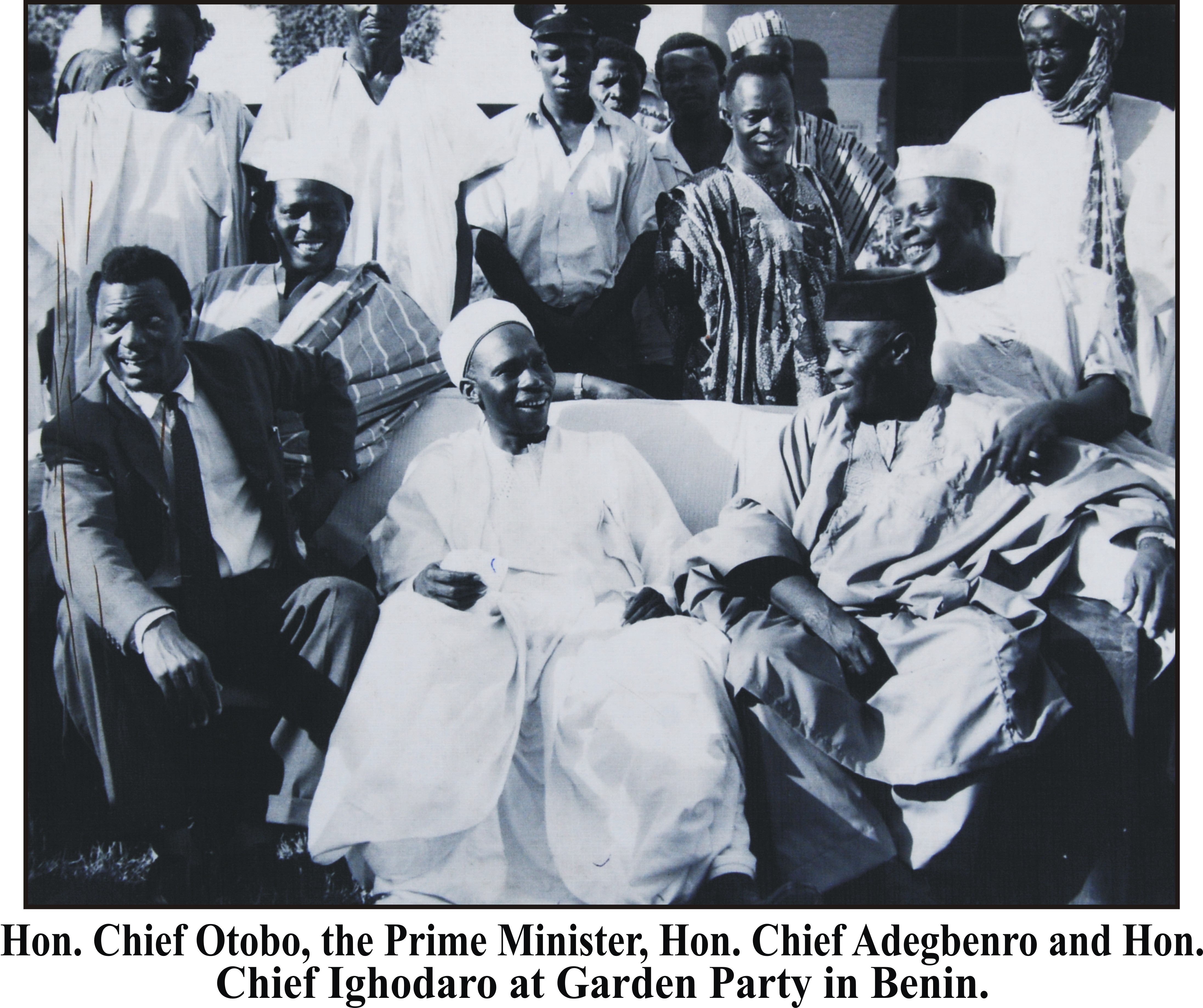This is the picture of the hon. Chief Otobo, Prime Minister, Hon. Chief Adegbenro and Hon. Chief Ighodaro at Garden Party in Benin.