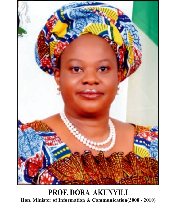This is the portrait of prof. Dora Akunyili, the former hon. minister of information and communication of the federal republic of Nigeria 2008-2010. Dora Nkem Akunyili OFR (14 July 1954 – 7 June 2014) was the Director-General of National Agency for Food and Drug Administration and Control (NAFDAC) of Nigeria from 2001 to 2008. Dora Akunyili died at a specialist cancer hospital in India on 7 June 2014 after a two-year battle with uterine cancer. Her funeral took place on 27 and 28 August, attended by many dignitaries from within Nigeria and beyond, including former President Goodluck Jonathan, and a former Nigerian military ruler General Yakubu Gowon Akunyili was laid to rest at Agulu in Anambra State.